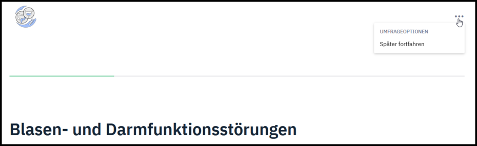 Sie haben die Option jederzeit eine Pause einzulegen und die Befragung zu einem späteren Zeitpunkt fortzusetzen. Falls Sie sich für eine Pause entscheiden, haben Sie zwei Möglichkeiten.